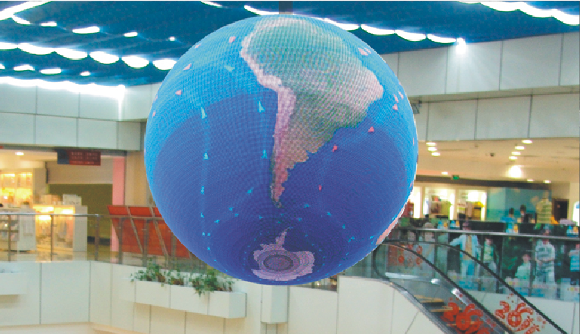 LED球形顯示屏能夠?qū)崿F(xiàn)360度的可視角度,全方位的播放視頻,各個(gè)角度都能感受到良好的視覺(jué)效果,沒(méi)有平面視角的問(wèn)題,并且能夠根據(jù)具體需求將球形素材直接映射到顯示屏上面,比較常見(jiàn)的有地球、足球等,讓人感覺(jué)惟妙惟肖。根據(jù)客戶需求和安裝環(huán)境定制尺寸大小。