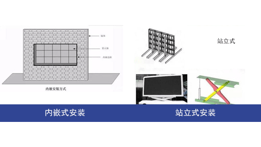LED顯示屏主要的安裝方式有:內嵌式、站立式、壁掛式、懸臂式、懸掛式、立柱式、樓頂式。根據客戶現場安裝環境選擇合適的安裝式。